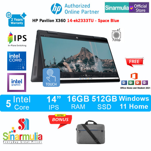 HP Pavilion x360 14-ek2111TU/ek2222TU Intel 5 120U 512GB SSD 16GB IPS Touch Win11+OHS