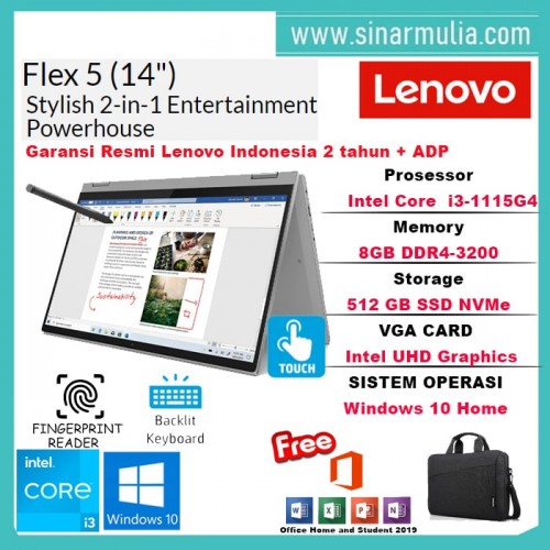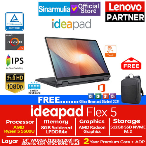 Lenovo IdeaPad Flex 5 Ryzen 5 5500U 512GB SSD 8GB WUXGA IPS Touch Win11+OHS