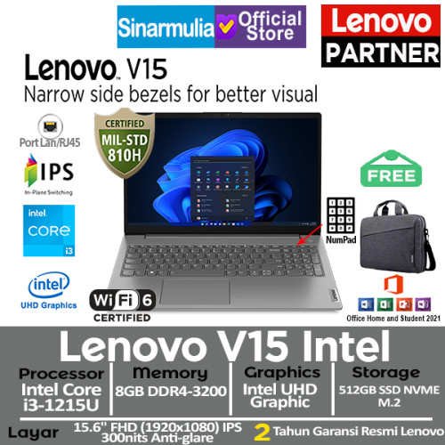 Lenovo Ideapad Slim 3i i3-1215U 256GB SSD 8GB FHD Win11+OHS